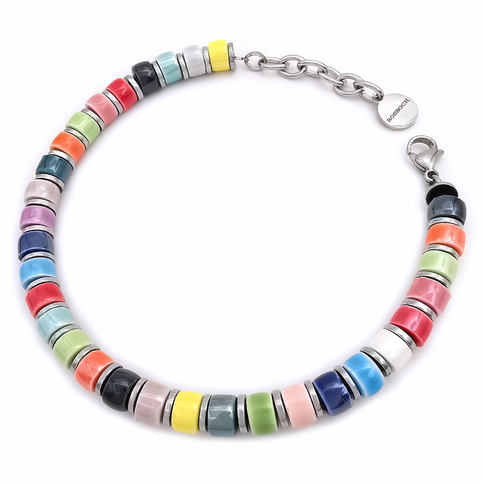 Bracciale da uomo realizzato con ceramica lucida e rondelle in ematite. Tutte le minuterie sono realizzate in acciaio e saldate per garantire la massima resistenza.