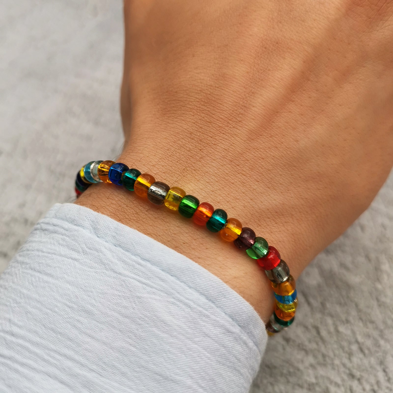 Bracciale da uomo in vetro colorato di Boemia trasparente (diametro 4mm)