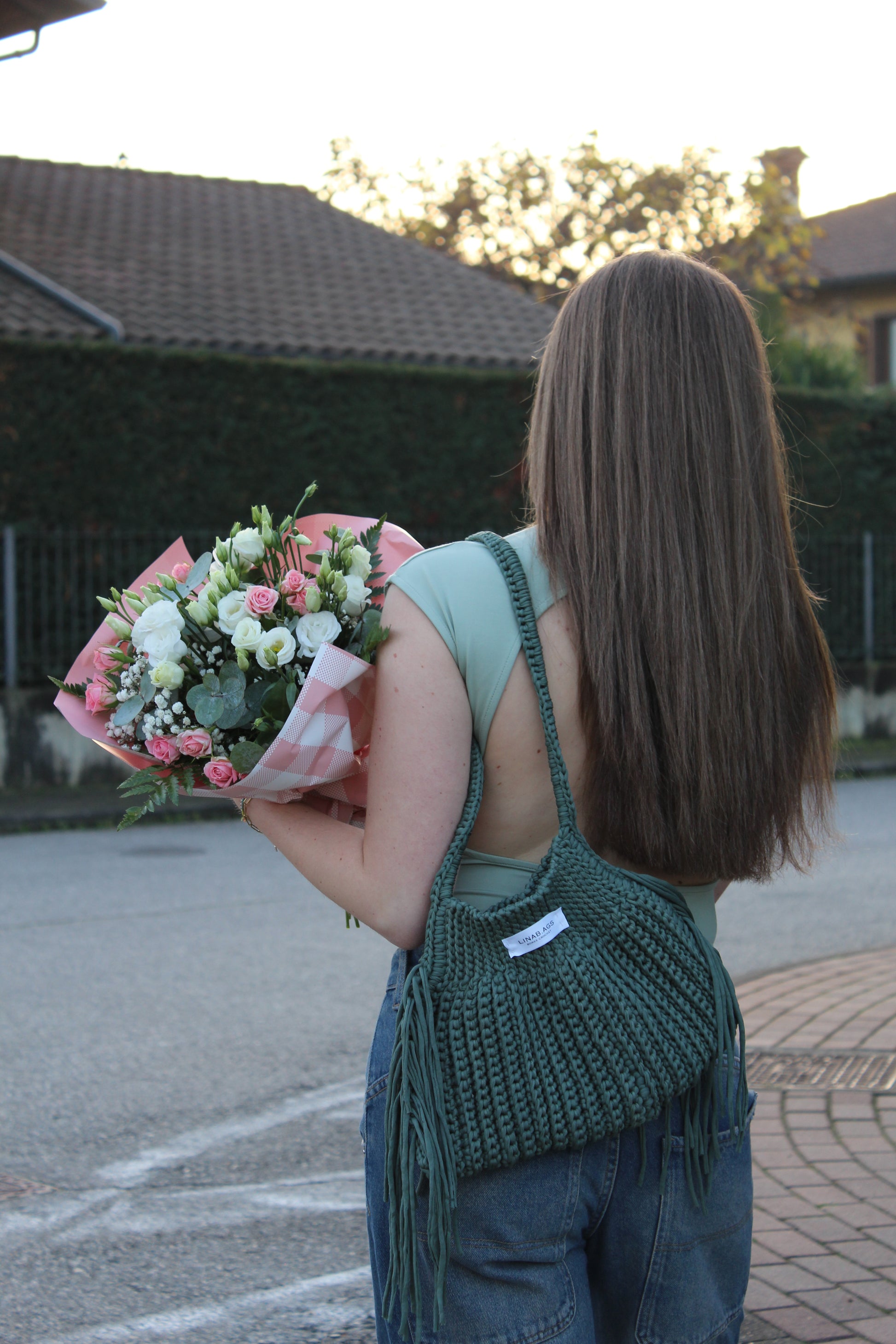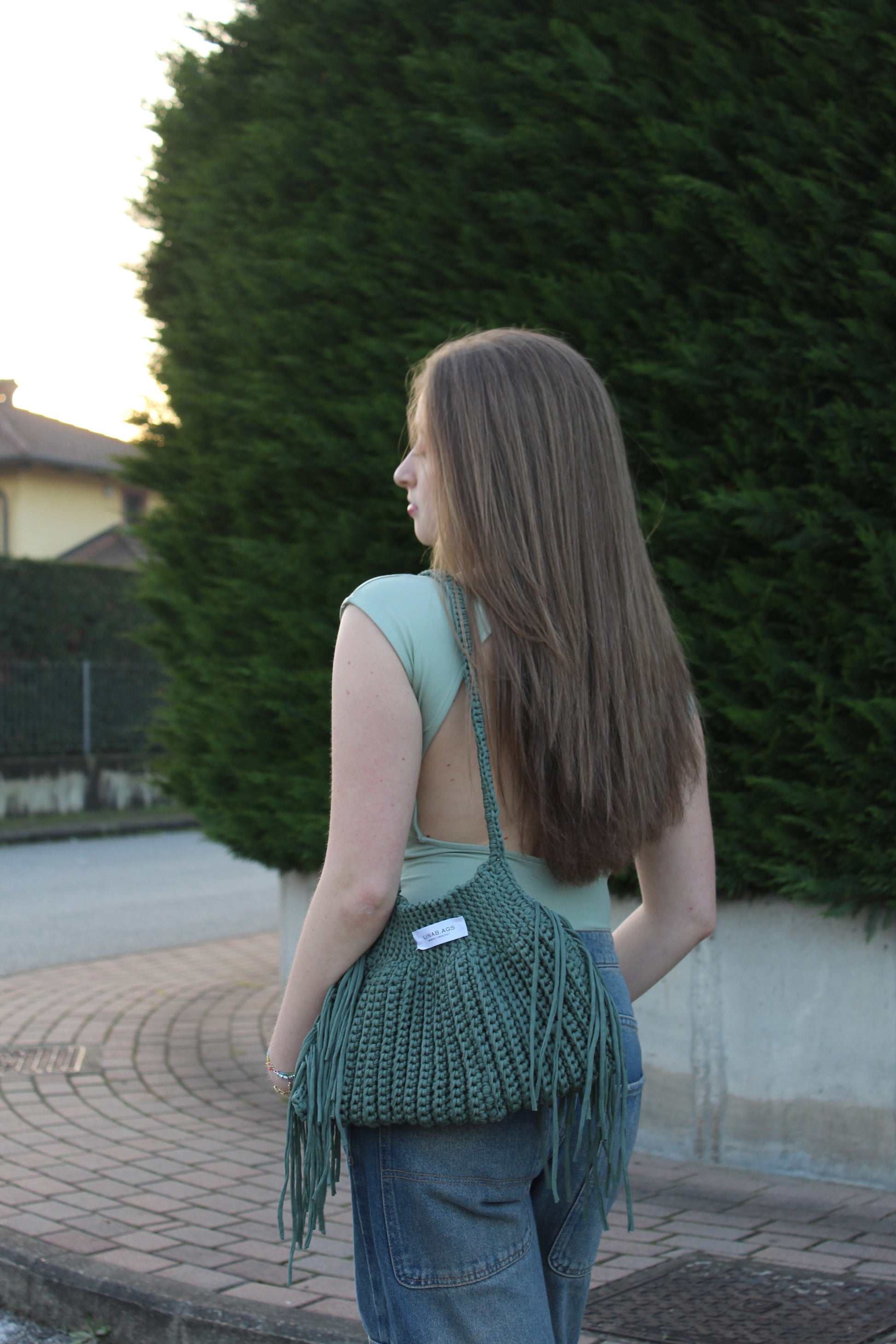 Dai un tocco di audacia al tuo outfit con la borsa da spalla Nikita, disponibile in due versioni, big e small. Realizzata a mano all'uncinetto, è dotata di frange per un look giovane e di tendenza.